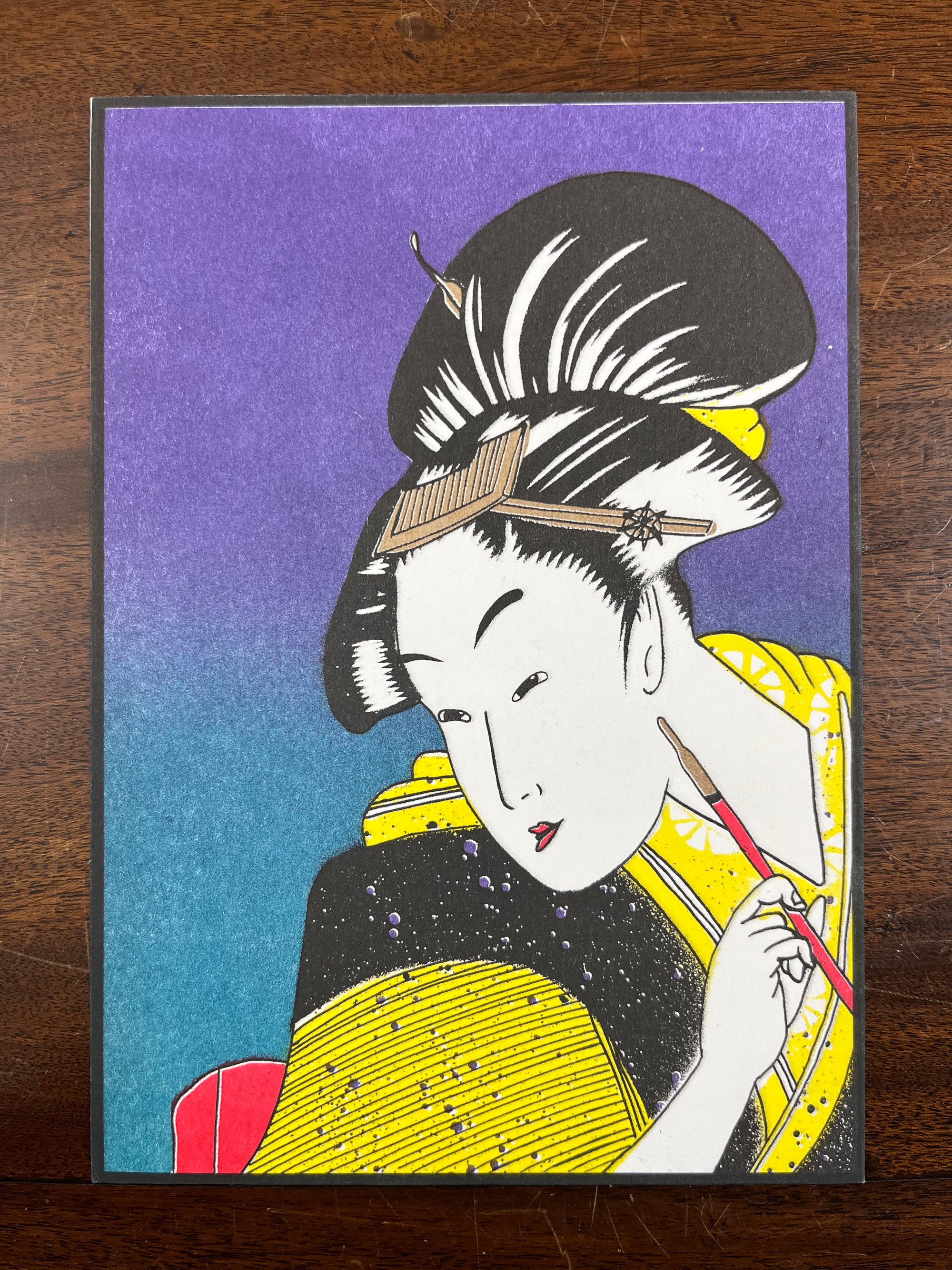 Because of the handmade nature of the printmaking process, the print you order might be slightly different from the one in the picture. Small imperfections like ink stains, unprinted areas or colour variations make each one different from the others and therefore unique.